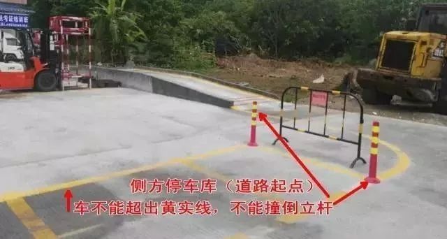 半坡起步:車上右手邊有一紅色箭頭,半坡停車時,車上箭頭要對準場地邊上的指定區域(紅線標注的);稍作停頓即可,起步時,左腳放離合要慢,右腳同步加大油門,注意同步操作,便于起步。